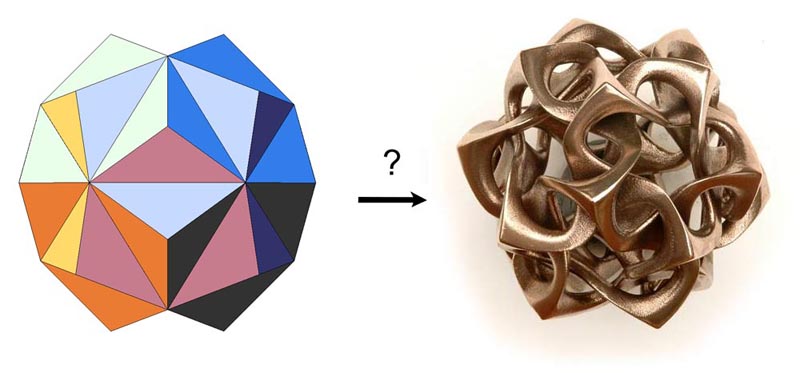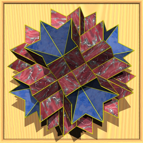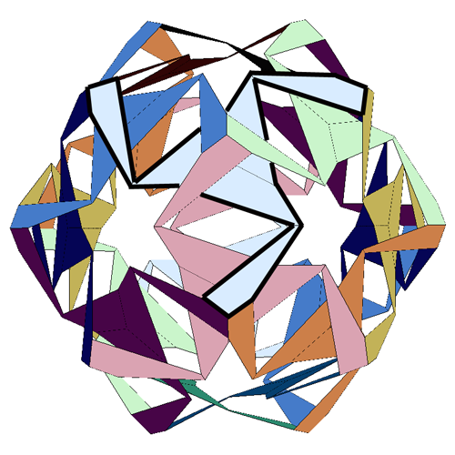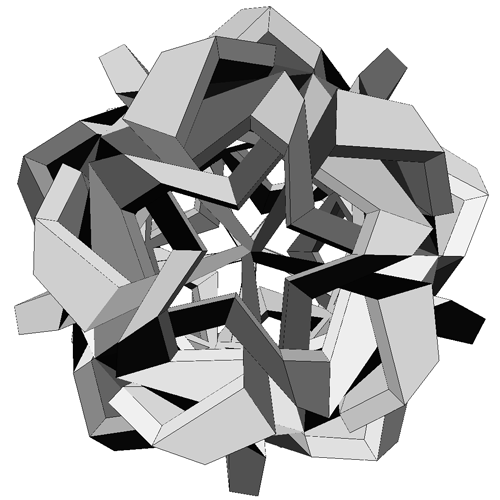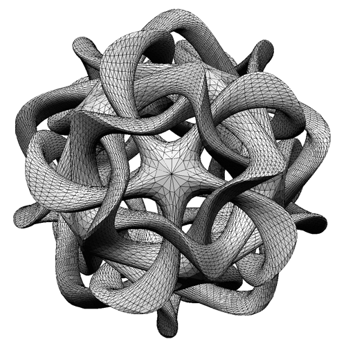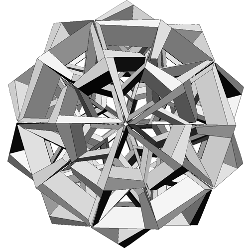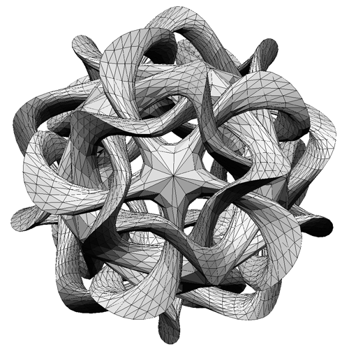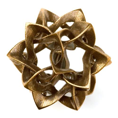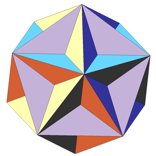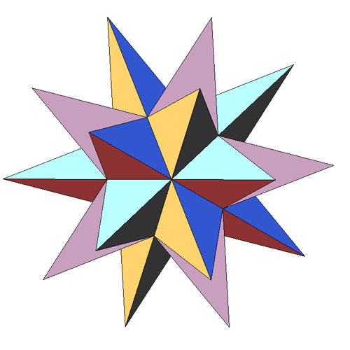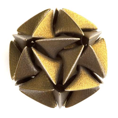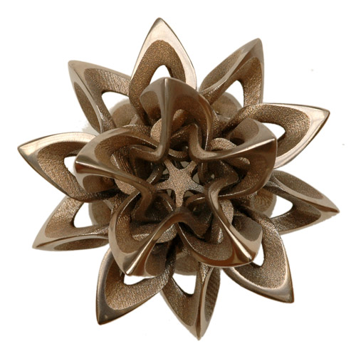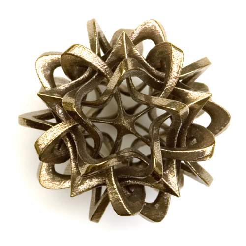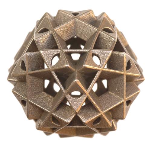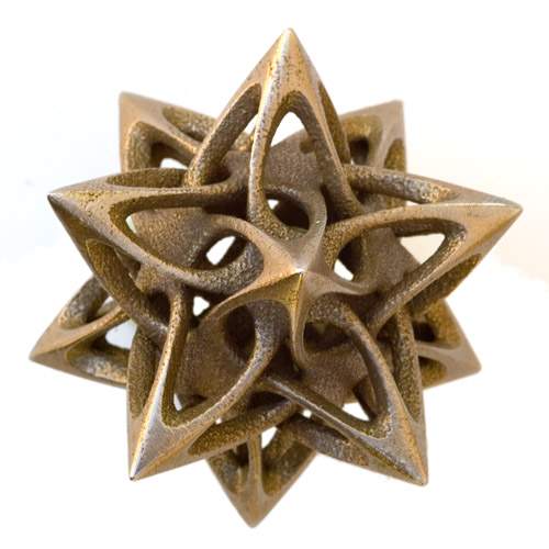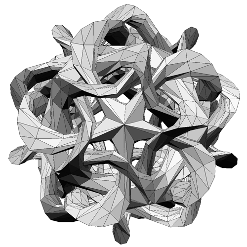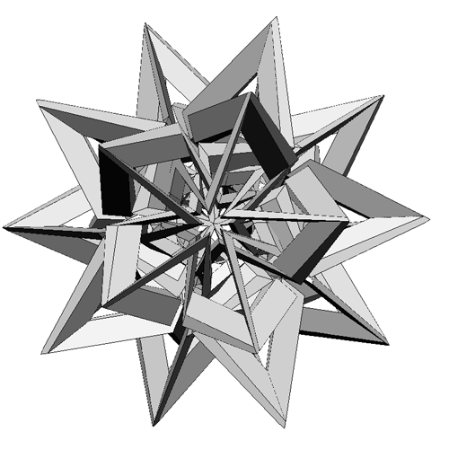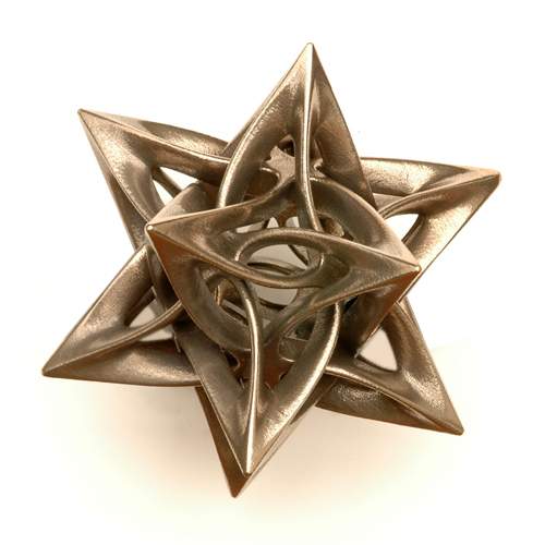 First sculpture with curved faces. Faces are 12 intersecting flat pentagrams.