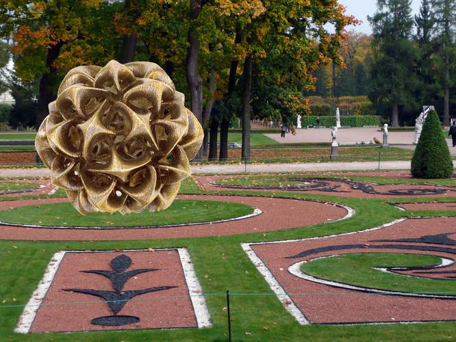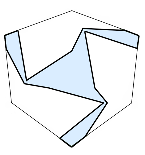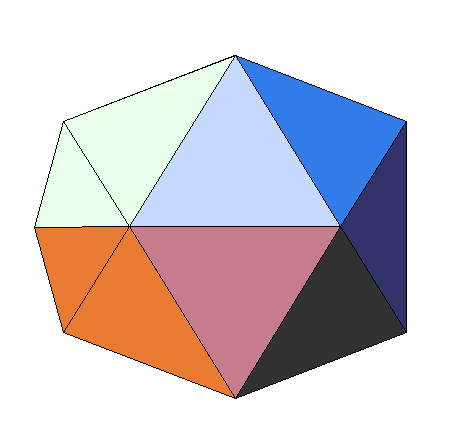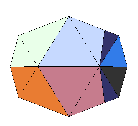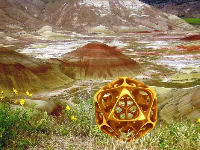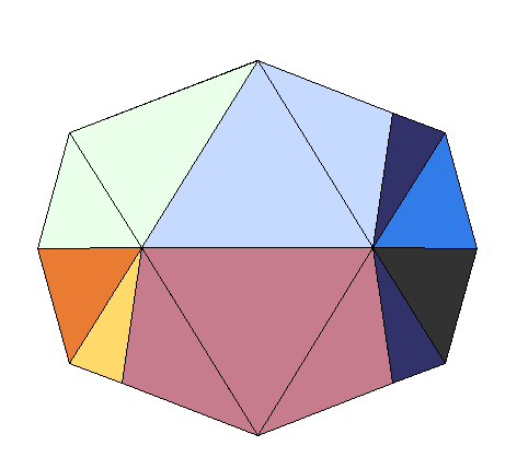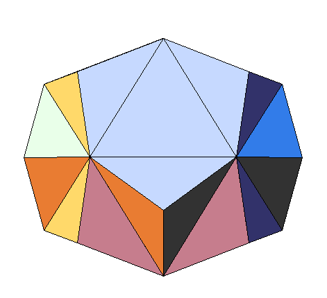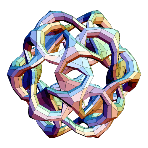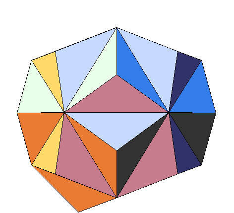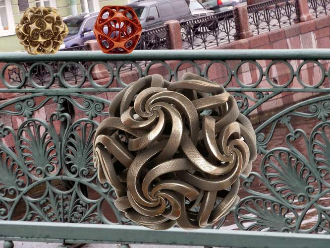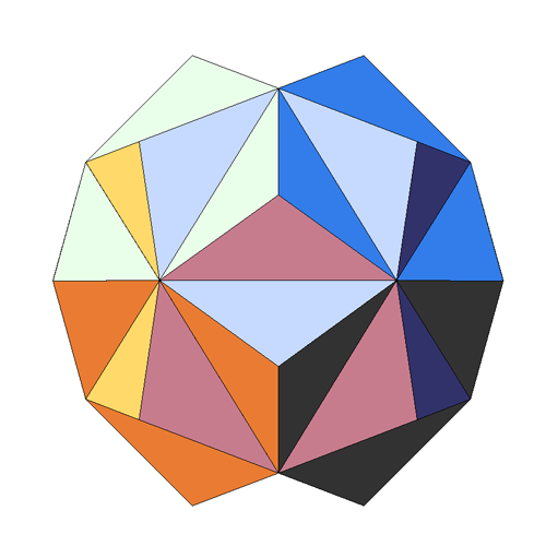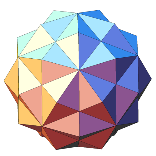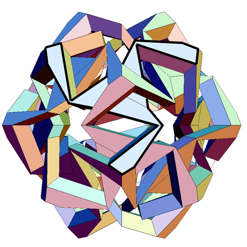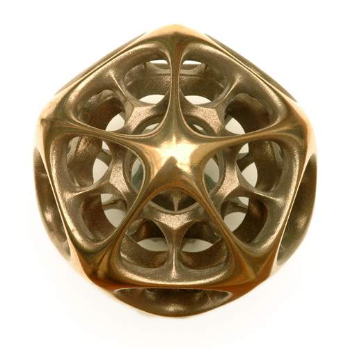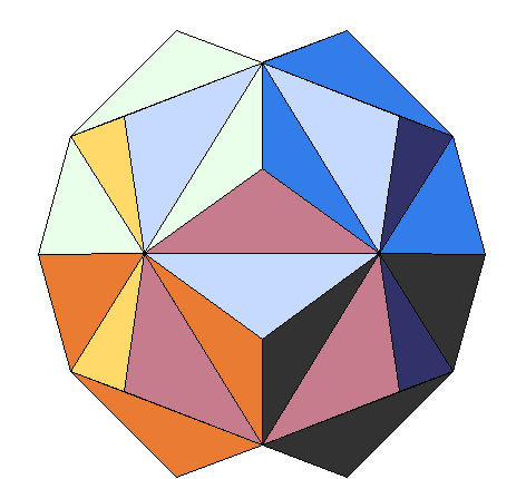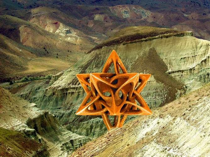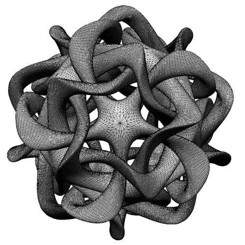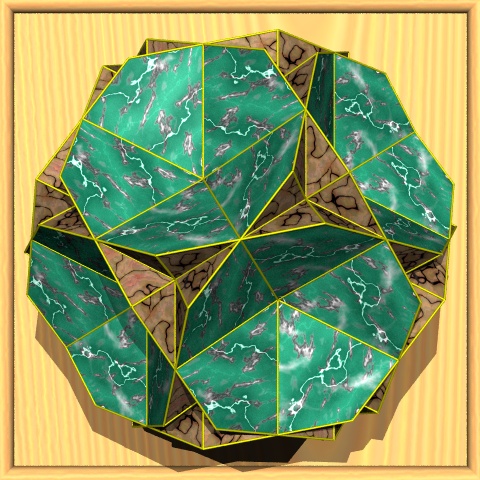 First sculpture with curved faces. Faces are 12 intersecting flat pentagrams.