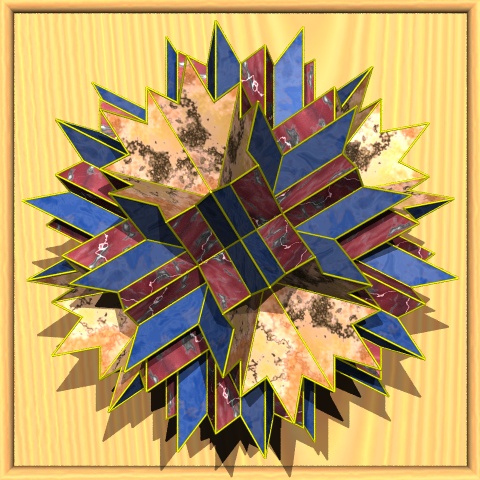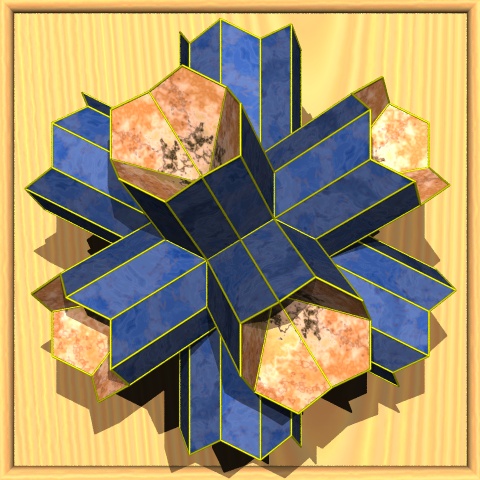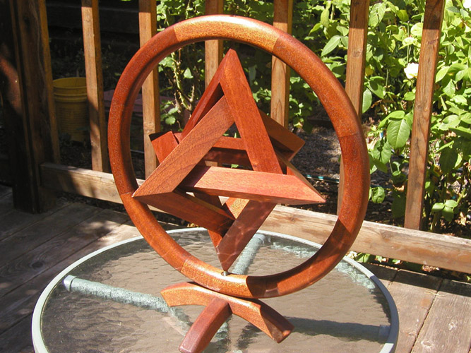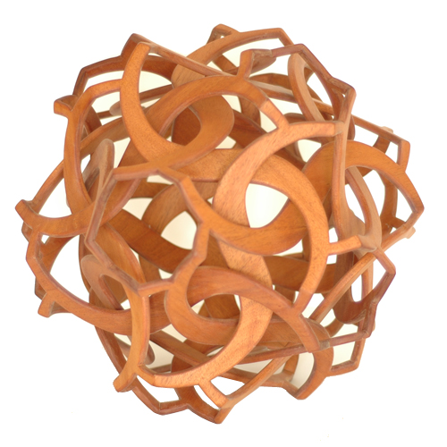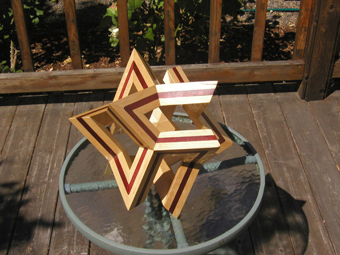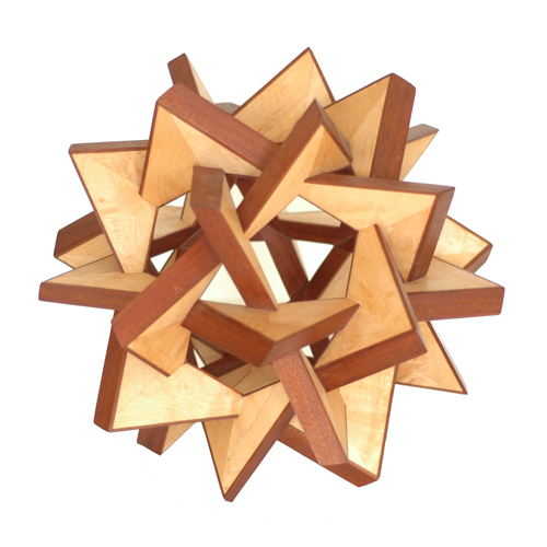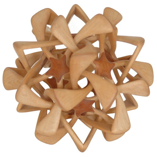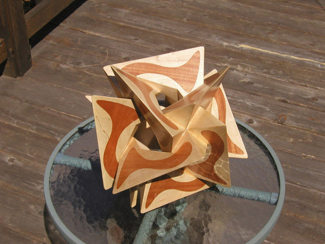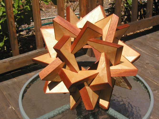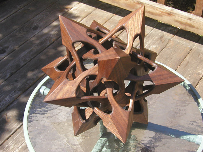 My first wood sculpture (2001) based on stellation of rhombic triacontahedron.
