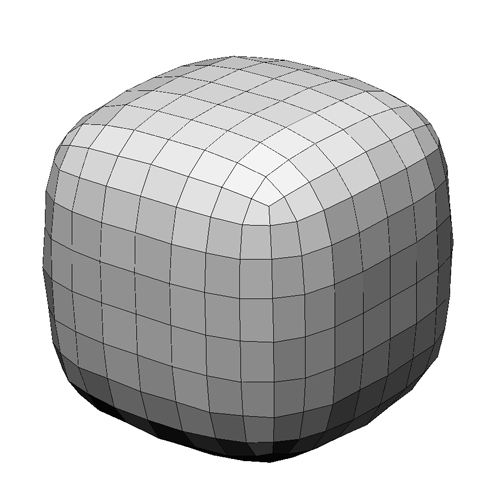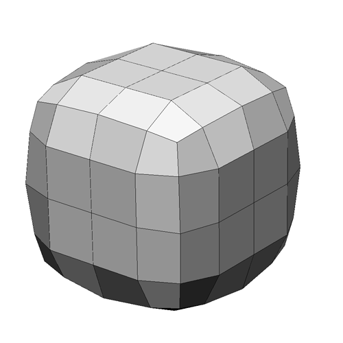 For each face, split each edge in half and move new vertices to make shape more rounded.